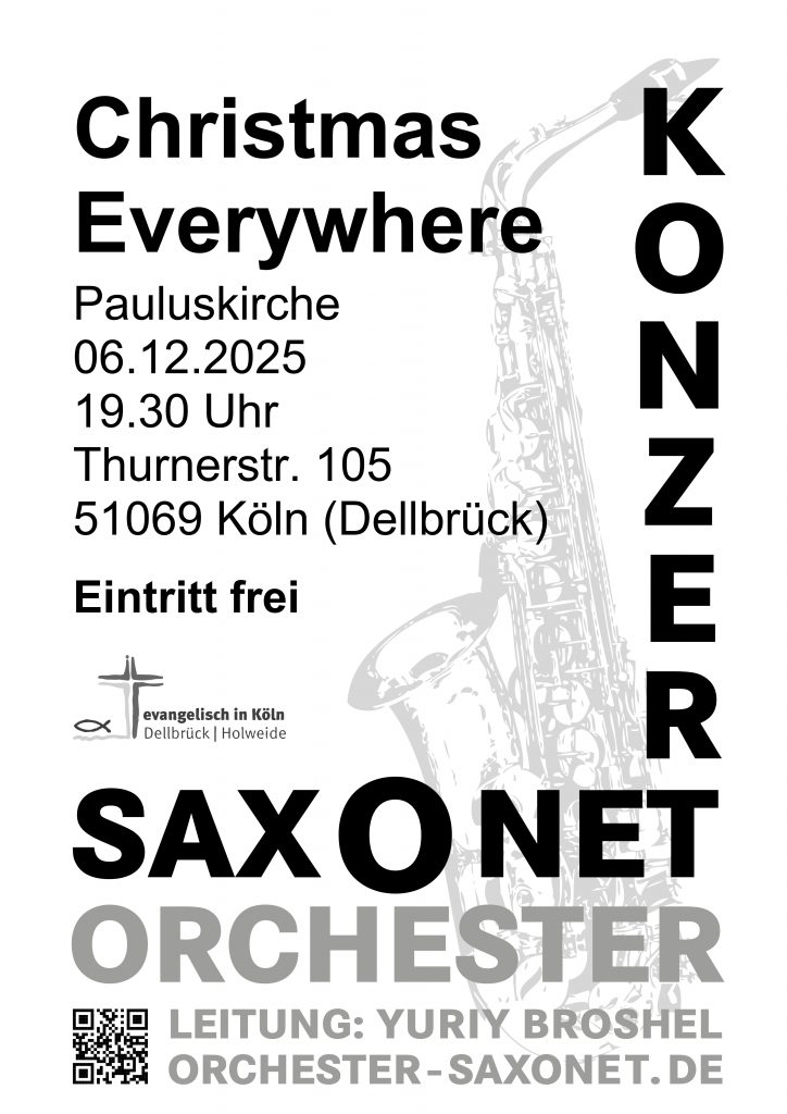 Das Orchester SAXONET aus Köln Dellbrück wurde bereits 2003 gegründet. Es besteht ausschließlich aus Holzblasinstrumenten (Saxofone, Querflöten, Klarinetten) und einem Schlagzeug. Unser Orchester und seine Musik verbindet Menschen zwischen 17 und 70 Jahren miteinander, fördert die Freude an der Musik und trägt mit seinen Konzerten zum Gemeindeleben bei. Hierbei spielen wir Musik von Musical über Pop bis hin zu Klassik oder Kölschrock.